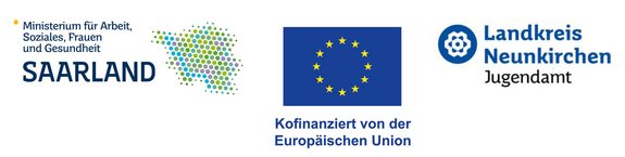 Die Jugendkoordination im Landkreis Neunkirchen wird im Rahmen des Programms „Investitionen in Wachstum und Beschäftigung“ durch den Europäischen Sozialfonds Plus (ESF+) sowie durch das Ministerium für Arbeit, Soziales, Frauen und Gesundheit des Saarlandes gefördert.